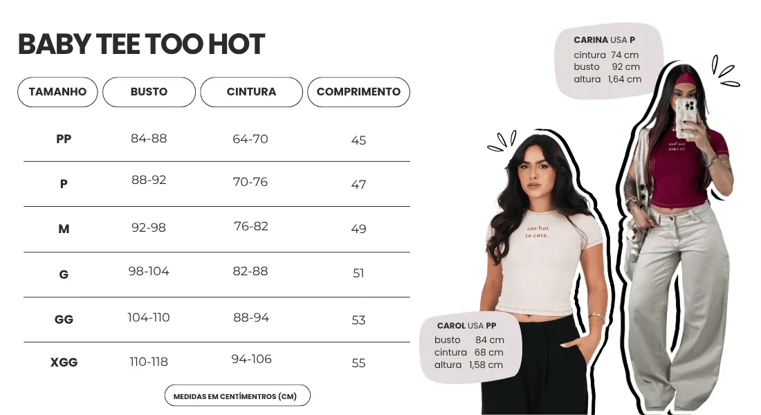 modelagem baby tee, justa e levemente cropped, valorizando a silhueta